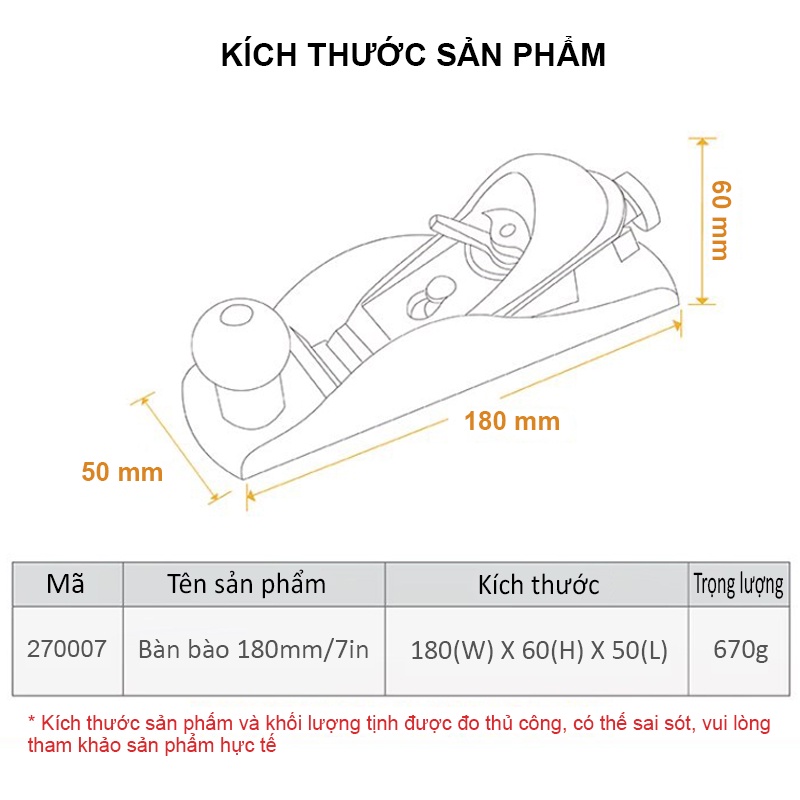 Nhà cửa & Đời sống > Dụng cụ & Thiết bị tiện ích > Dụng cụ > Cưa, máy cắt & máy mài || Bàn bào mini lưỡi bào 41mm-1,5 inch tính ứng dụng cao, làm đồ DIY Bào gỗ cầm tay 180mm TACTIX 270007Còn hàng
