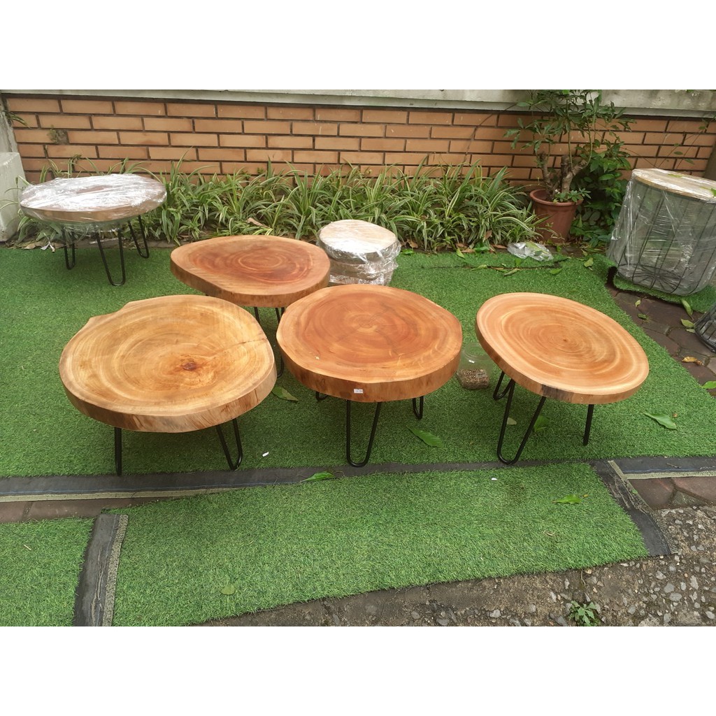 Nhà cửa & Đời sống > Nội thất > Bàn || Bàn cafe gỗ xà cừ gỗ nguyên tấm| Bàn trà Decor ban công Đường kính 25cm - 55cm - Chân hairpin cao 40 - 50cm TổngCòn hàng