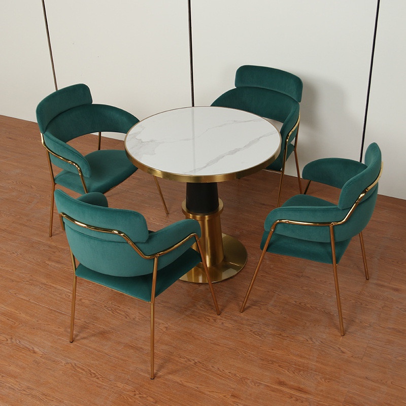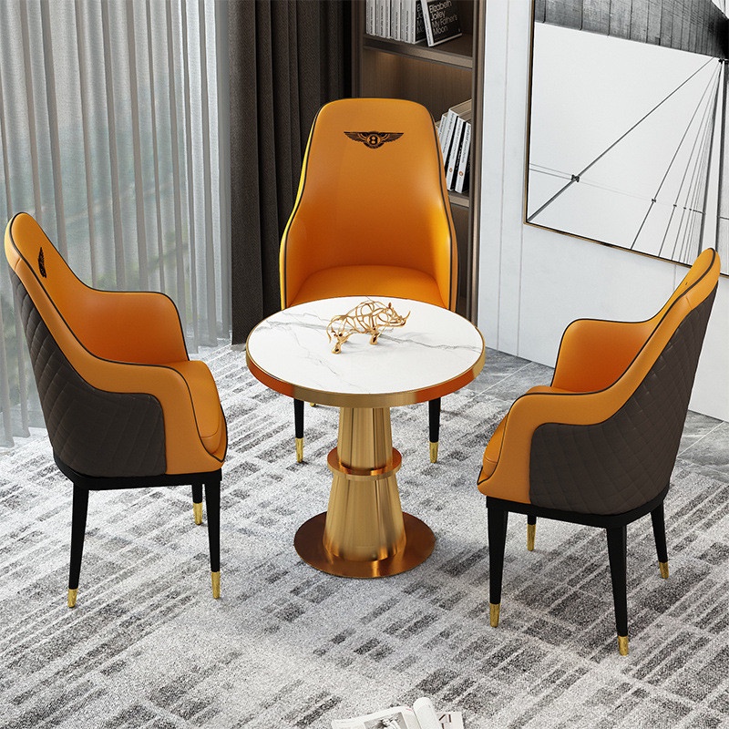Bàn cafe mặt đá gốm chân sơn + inox mạ vàng