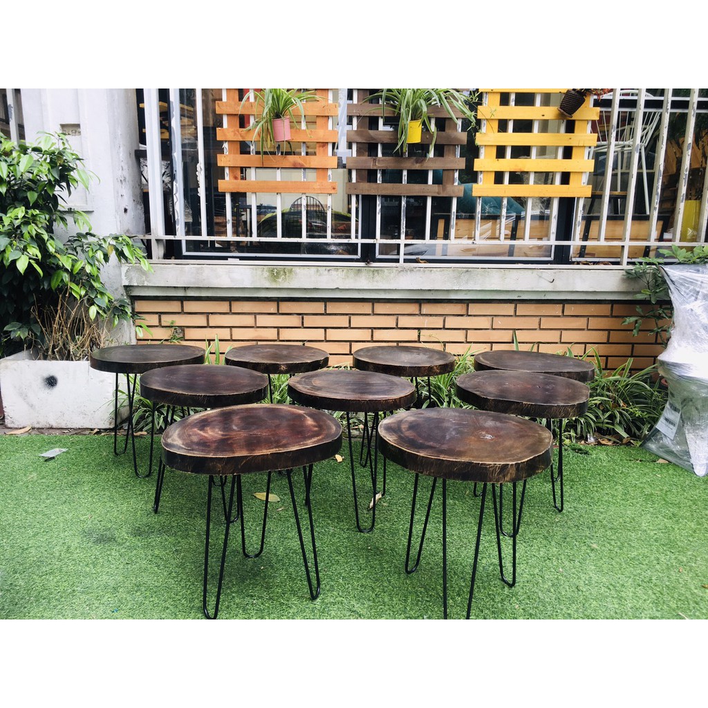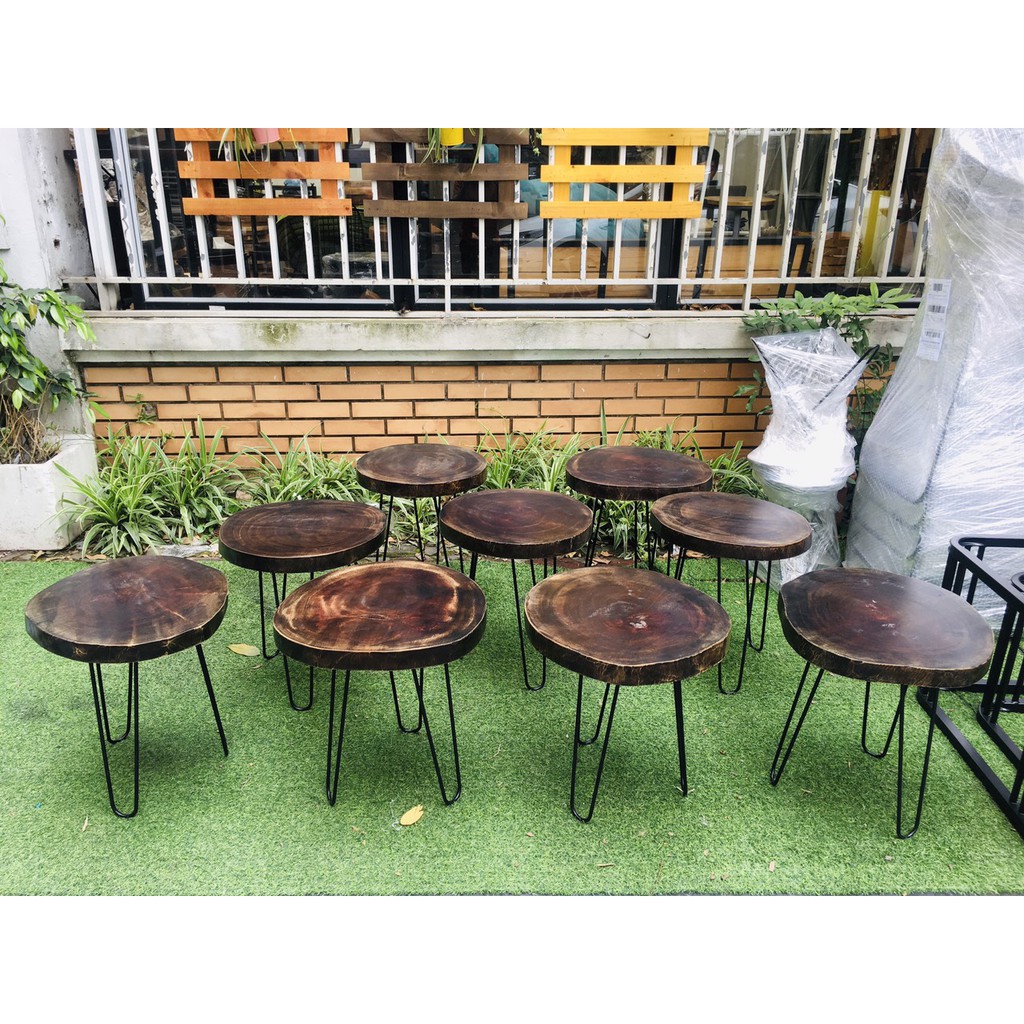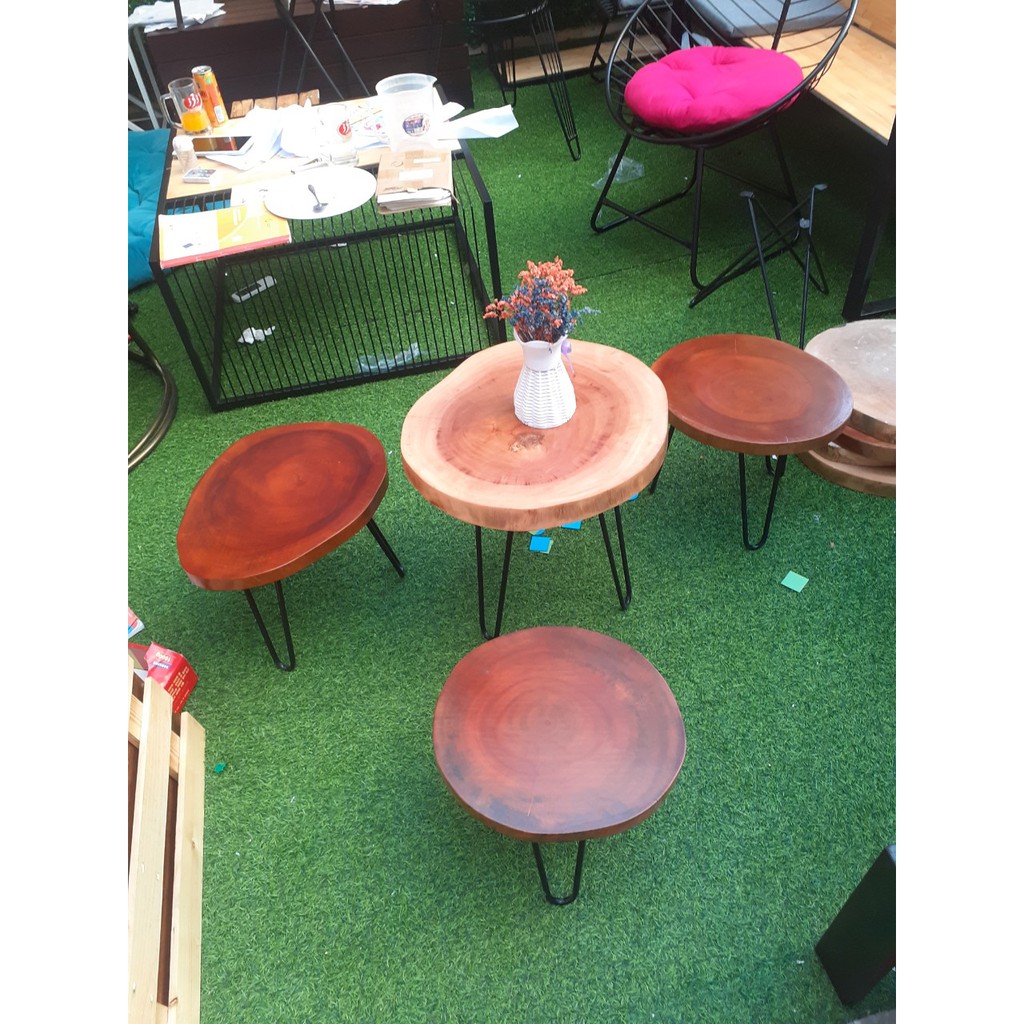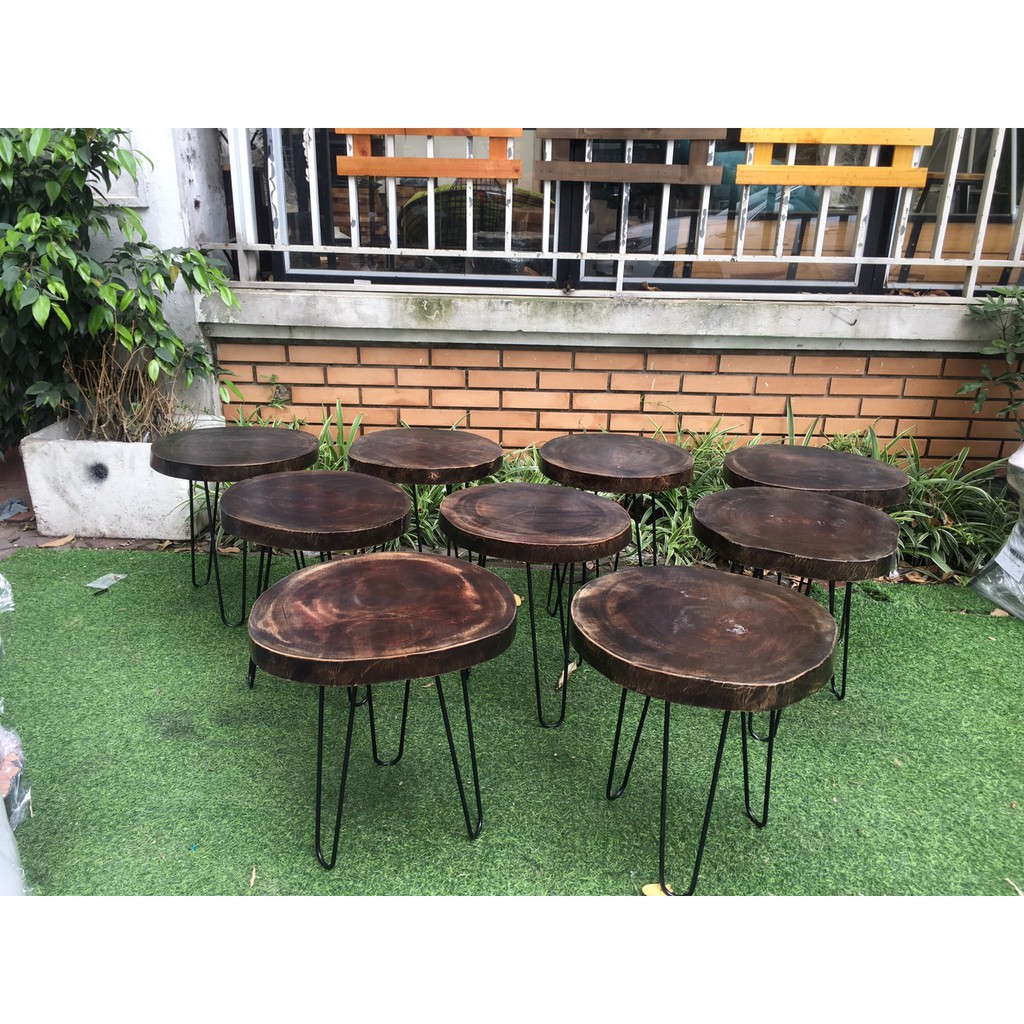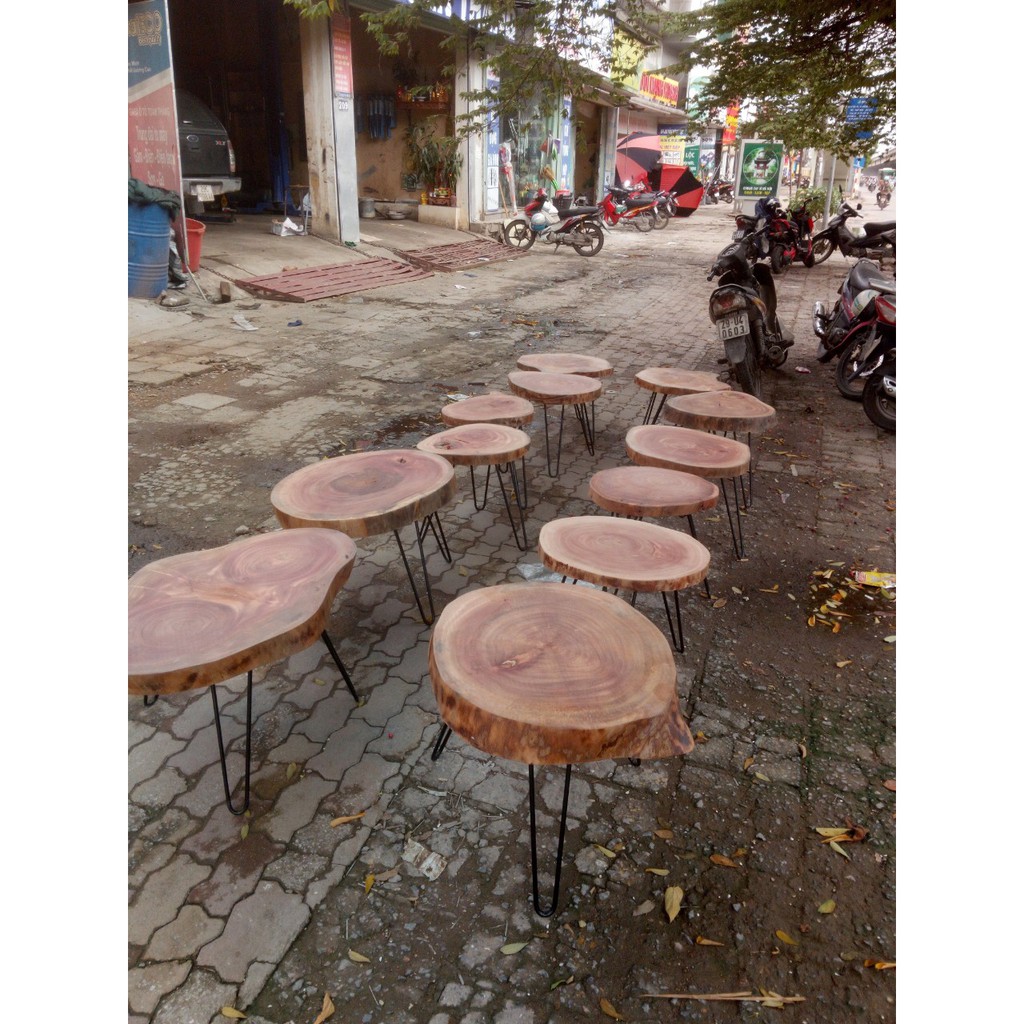 Giới thiệu bàn cafe xà cừ gỗ nguyên tầm chân cao 50cm D = 36 - 40cm| bàn cafe gỗ phản