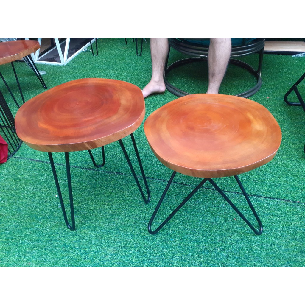 bàn cafe xà cừ gỗ nguyên tầm chân cao 50cm D = 36 - 40cm| bàn cafe gỗ phản