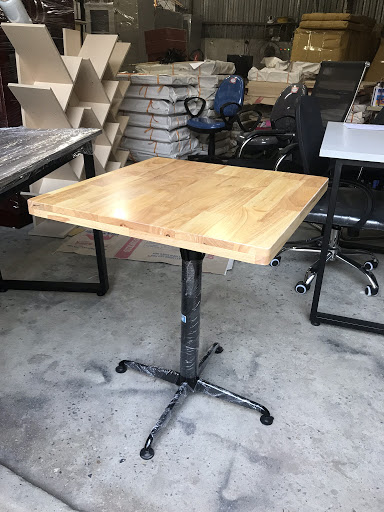 Bàn cà phê chân trụ làm bằng sắt sơn tĩnh điện màu đen.Mặt bàn làm từ gỗ cao su ghép thanh.