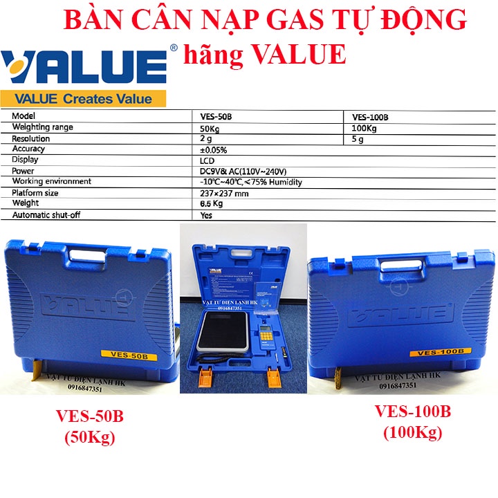 Nhà cửa & Đời sống > Dụng cụ nhà bếp > Dụng cụ đo lường || Bàn cân nạp gas điện tử tự động VALUE VES-50B 50Kg - VES-100B 100Kg - Can ga 50B 100BCòn hàng