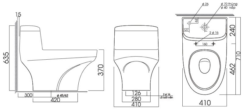 Nhà cửa & Đời sống > Đồ dùng phòng tắm > Bồn cầu, ghế và nắp bồn cầu || Bàn cầu 1 khối Thiên Thanh Gold - men sứ chống bán bẩn - bảo hành 10 năm sứCòn hàng