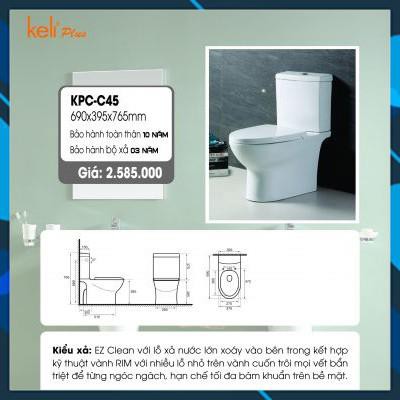 Giới thiệu Bàn cầu 2 khối cao cấp Keli C45, xả xoáy, nắp êm, men chống bám bẩn. Bảo hành 10 năm