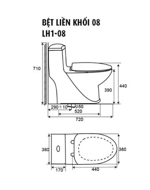 Bàn cầu liền khối VInaloha 08 sử dụng men chống dính,xả tiết kiệm nước 3lit/,6lit, xả đẩy lực mạnh và êm