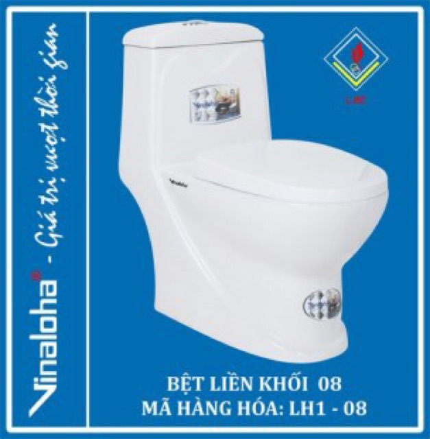 Giới thiệu Bàn cầu liền khối VInaloha 08 sử dụng men chống dính,xả tiết kiệm nước 3lit/,6lit, xả đẩy lực mạnh và êm