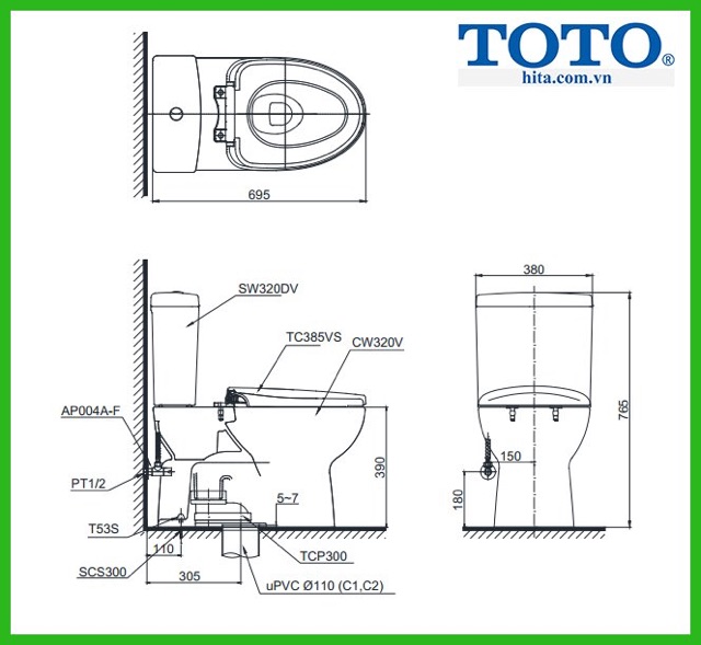 Bạn có thể tham khảo các thông số kỹ thuật dùng để lắp đặt cho bồn cầu TOTO CS320DRT3. Thông số kỹ thuật cũng như là về kích thước của sản phẩm thì bạn nên tham khảo trước khi mua sản phẩm nhé. Để đảm bảo được rằng sản phẩm phù hợp với không gian của ngôi nhà nói chung cũng như nhà vệ sinh nói riêng nhé.