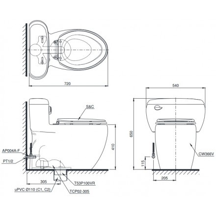 Giới thiệu Bàn Cầu TOTO MS366T7 Một Khối Nắp TC6040S