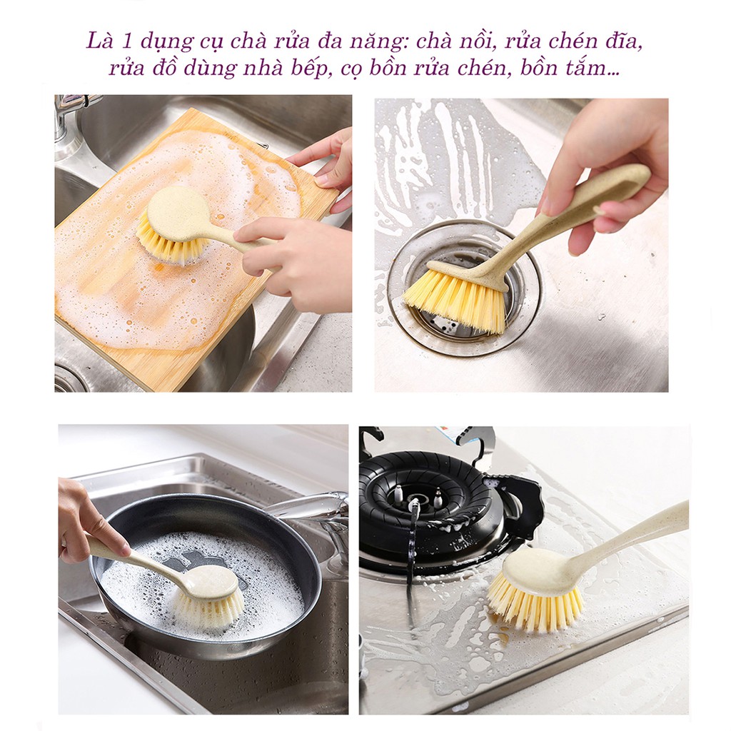 Bàn chải chà nồi bàn chải có tay cầm được làm từ nhựa lúa mì bền chắc thân thiện với môi trường