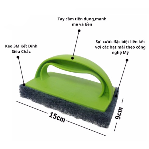 Bàn chải chà sàn siêu sạch thế hệ mới 3M Scotch Brite có tay cầm rộng,thoải mái được làm bằng nhựa PP cao cấp,bàn chà được cấu tạo bởi những sợi cước đặc biệt được liên kết bởi những hạt mài tròn gắn bởi keo 3M (công nghệ độc quyền của 3M Mỹ) chà siêu sạch nhưng không gây trầy xước.-Lớp cước xanh được cấu tạo bởi các sợi cước đặc biệt liên kết chặt với các hạt mài mềm bằng keo 3M(công nghệ keo độc quyền của 3M Mỹ)