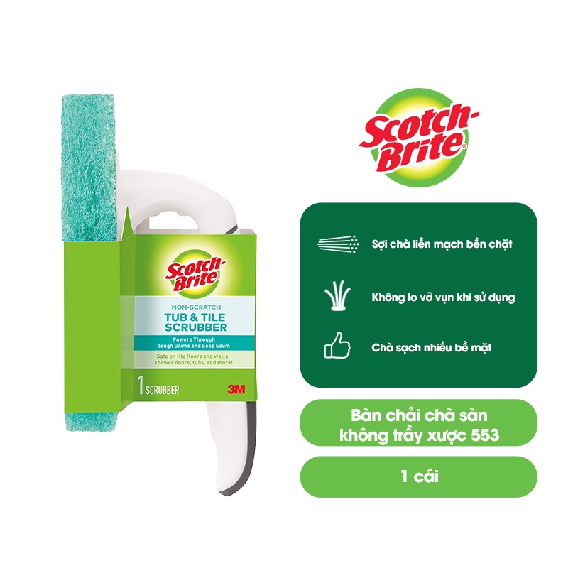 Bàn chải chà sàn Scotch Brite chống trầy xước, an toàn trên nhiều bề mặt, lấy sạch vết bẩn cứng đầu hiệu quả 553