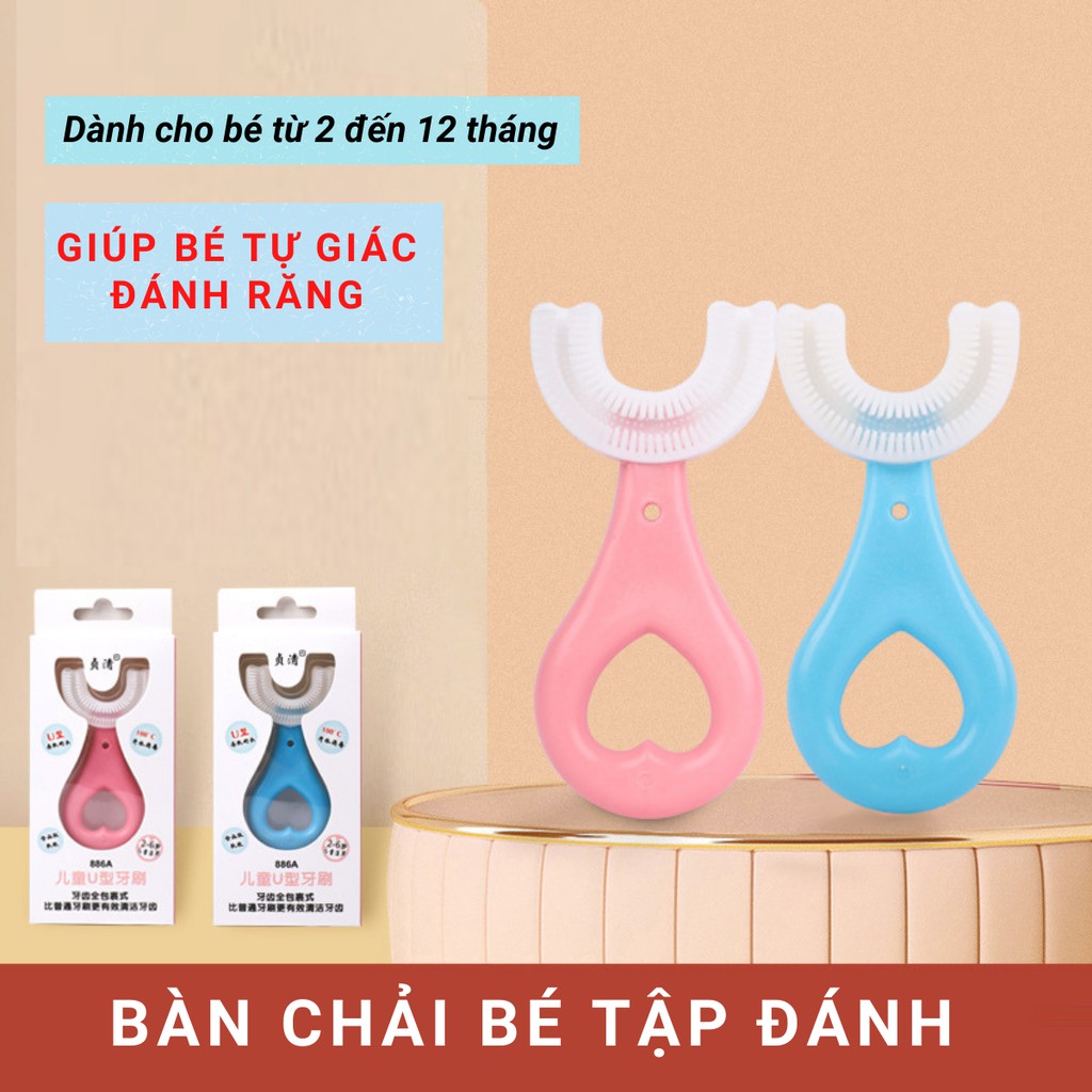 Bàn chải cho bé tập đánh răng, Bàn chải bé chữ U, chất liệu silicon an toàn, cho trẻ 2-8 tuổi