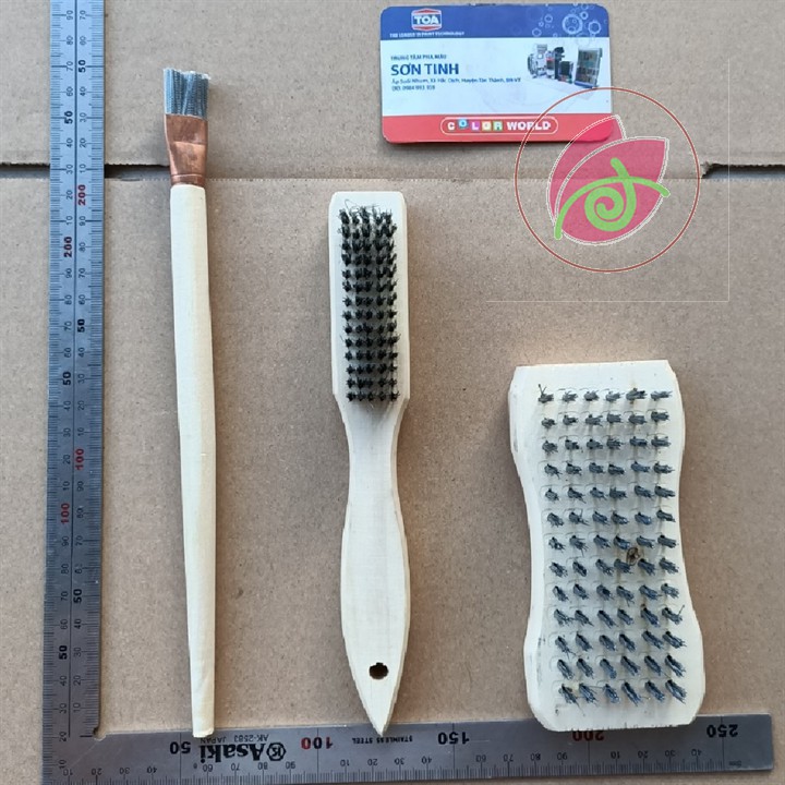 ✅Đầu bàn chải làm bằng sắt, cán bằng gỗ, giúp việc vệ sinh được dễ dàng✅Dùng vệ sinh các vật bằng kim loại, chà các vết bụi bẩn, dầu mỡ hoặc sử dụng kèm với các hoá chất tẩy sơn để đánh bay lớp sơn cũ trên bề mặt bằng kim loại.