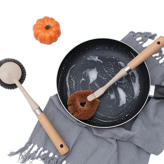 Bàn chải cọ rửa chảo tay cầm gỗ BAMBOOO ECO đồ dùng nhà bếp đa năng