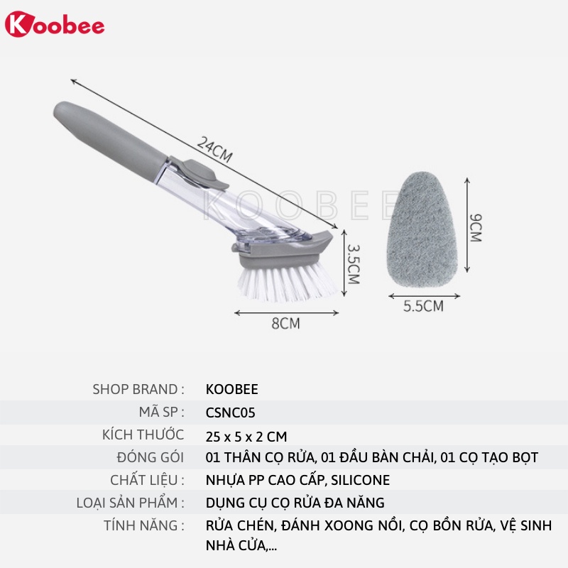 Nhà cửa & Đời sống > Dụng cụ chăm sóc nhà cửa > Miếng bọt biển, miếng chà vệ sinh || Bộ bàn chải cọ rửa đa năng KooBee - Dụng cụ rửa cọ xoong nồi, rửa bát, cọ bếp,có bình chứa tiện lợi (CSNC05)Còn hàng