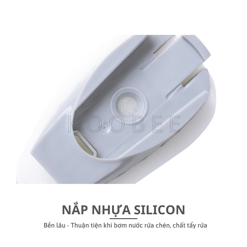- Bình chứa nước rửa chén tiện lợi: Để làm sạch, bạn chỉ cần ấn nút silicon ở phần thân dụng cụ rửa để bơm chất lỏng. Nhấn chất lỏng, chất lỏng làm sạch không bị lãng phí, làm sạch trơn tru và tiết kiệm.