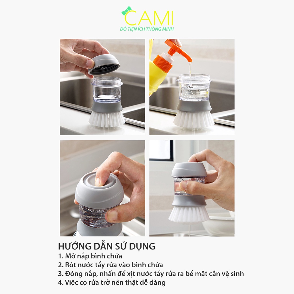 Nhà cửa & Đời sống > Dụng cụ chăm sóc nhà cửa > Bàn chải vệ sinh || Bàn chải, cọ rửa nhà bếp, xoong nồi đa năng có bình chứa, xịt nước rửa chén tiện lợi_Cami_CMPK190Còn hàng