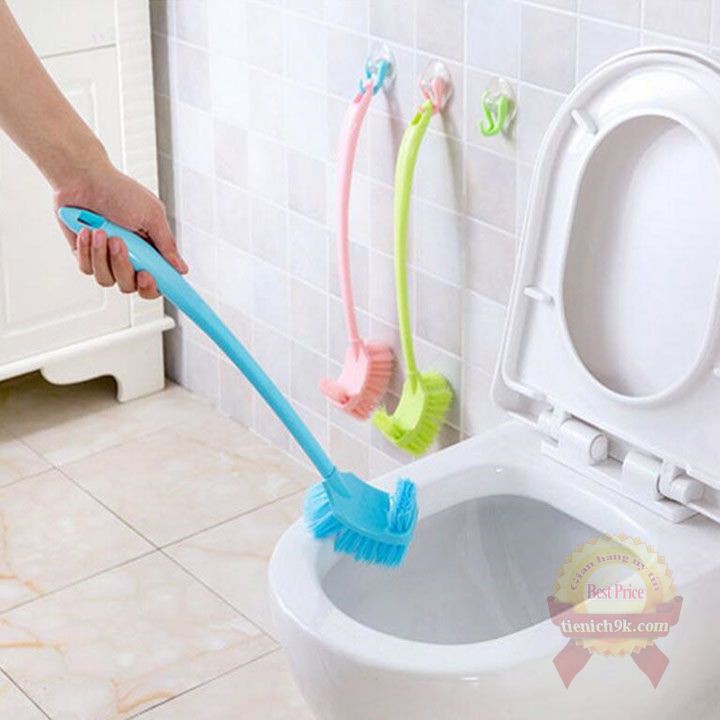 Bàn chải cọ rửa nhà tắm 2 đầu đa năng vệ sinh bồn cầu toilet có tay cầm cán dài