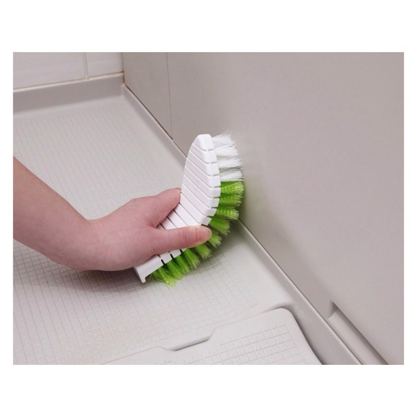 Bàn chải với 2 màu lông: Phần lông màu trắng dùng để vệ sinh những góc cạnh có vết bẩn cứng đầu, phần lông xanh mềm hơn giúp vệ sinh những vật dụng dễ bị trầy xước.