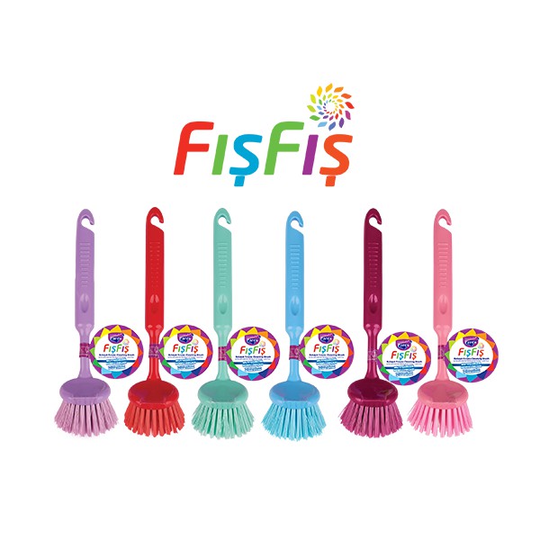 1. Bàn chải cọ rửa nồi chảo Parex Fis Fis đầu xòe tròn, tay cầm có lỗ treo