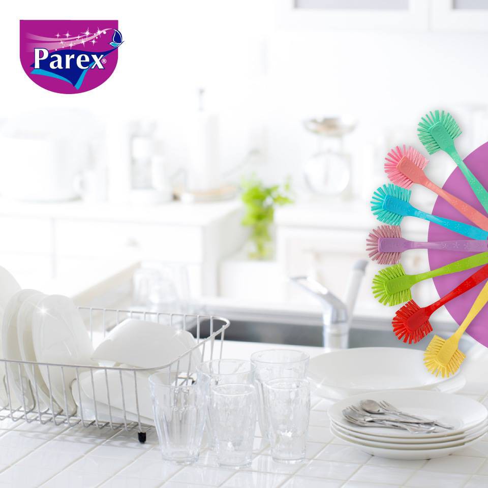2. Bàn chải cọ rửa nồi chảo Parex đầu xòe cánh quạt, có lỗ treo