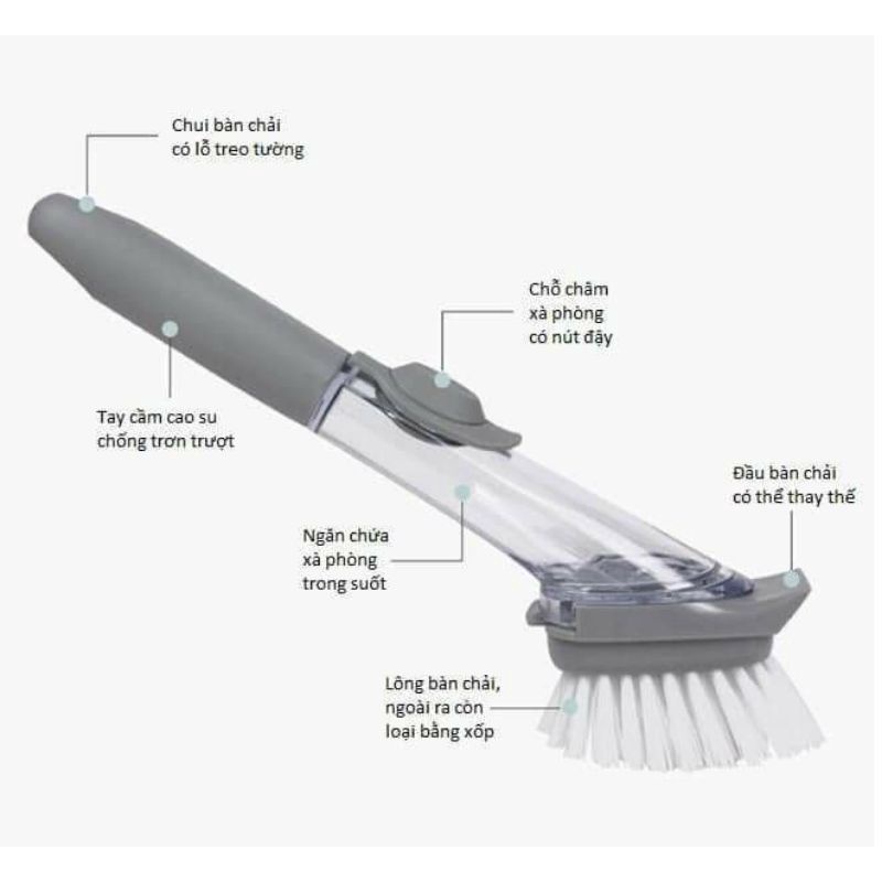Nhà cửa & Đời sống > Dụng cụ nhà bếp > Khác || Bàn chải cọ rửa thông minh nhà bếp có bình chứa và xịt dầu rửa chén bát, kèm theo 2 đầu bàn chảiCòn hàng