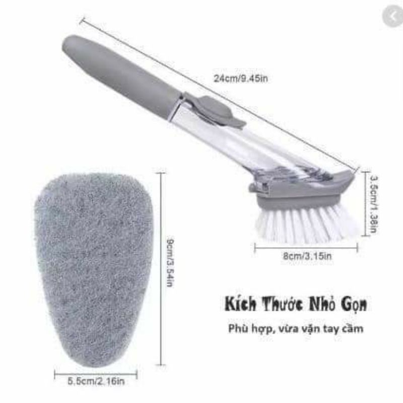 Bàn chải cọ rửa thông minh nhà bếp có bình chứa và xịt dầu rửa chén bát, kèm theo 2 đầu bàn chải
