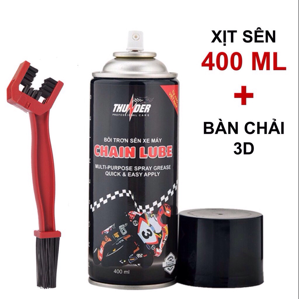 Ô tô > Dầu nhớt và phụ gia ô tô > Mỡ & Chất bôi trơn || Bộ bàn chải cọ sên, xích 3D và dưỡng sên/xích xe máy Chain lube 400mlCòn hàng