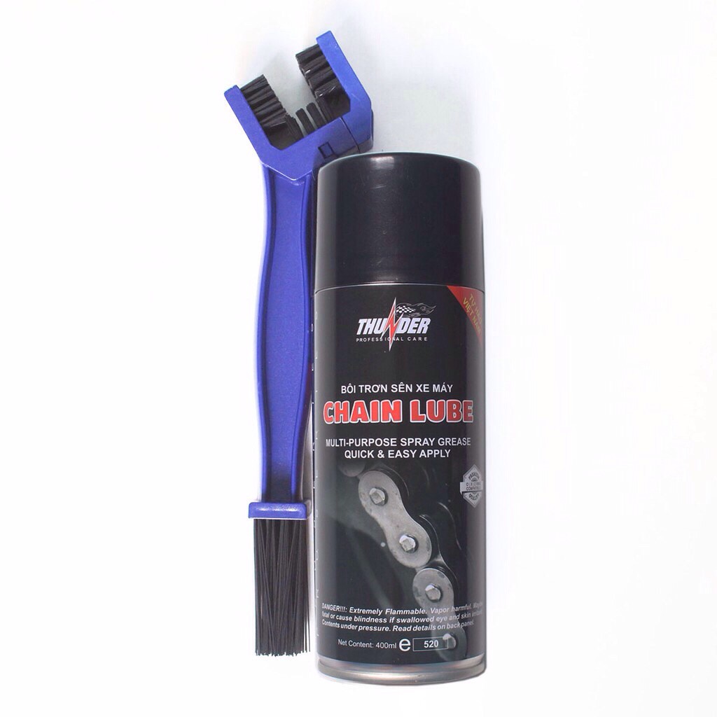 Cách Sử dụng: Dùng bàn chải cọ xích xe để đánh những chất bẩn bám dính sau đó mới dùng chai xịt chain lube dưỡng xích xe