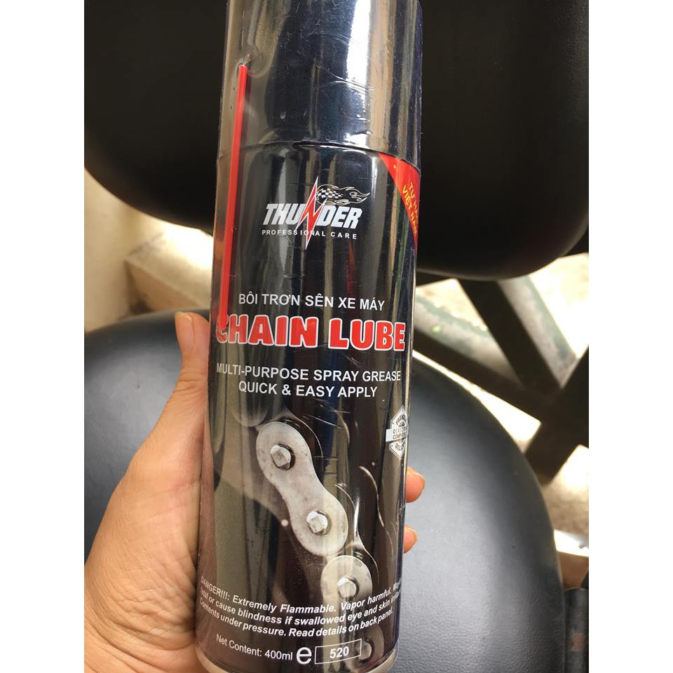 Bình xịt bôi trơn Chain Lube là dầu bôi trơn có công dụng dưỡng sên và bảo vệ sên.Bôi trơn chain lube giúp hạn chế rỉ sét, bám bụi, giảm ồn do nhông sên/xích gây ra khi hết dầu dưỡng