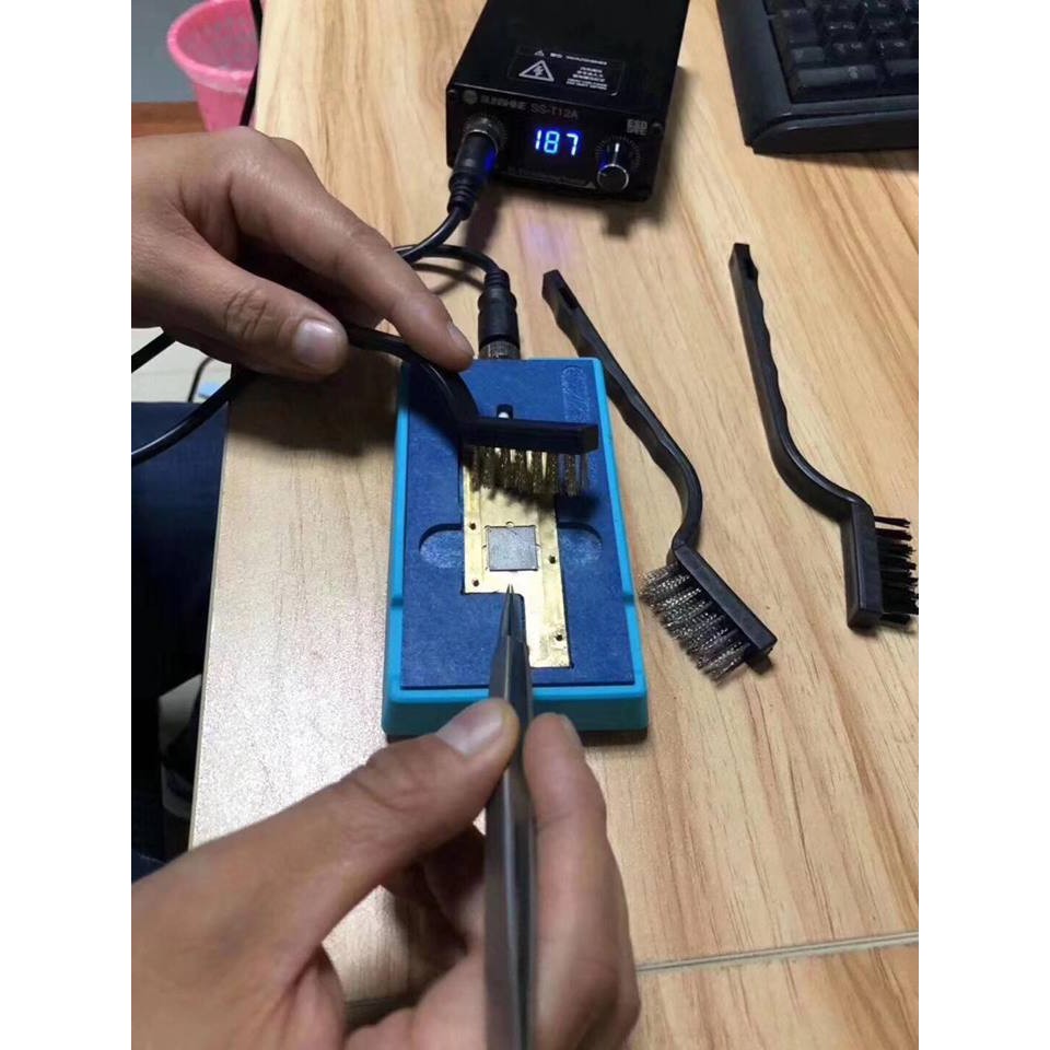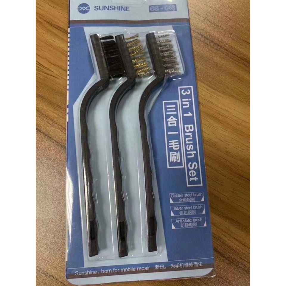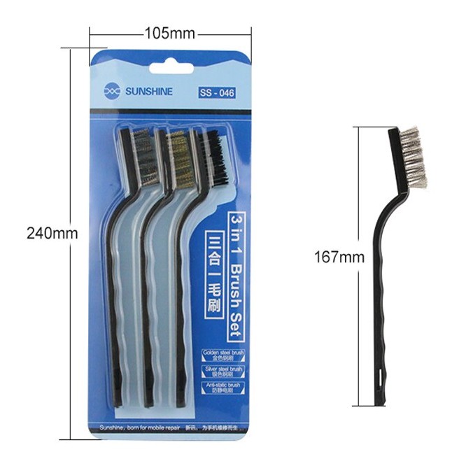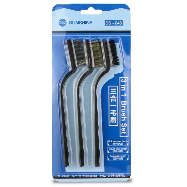 Bộ 3 bàn chải cọ dùng vệ sinh main, và vệ sinh keo trên IC cho anh em kỹ thuật sử chữa điện thoại. Với 2 chiếc lông kim loại không bị nhiệt làm biến dạng, giúp sử dụng để chà, cọ mặt ic trên đế nhiệt để quét đi keo trên IC mà không bị sun lông chải. Còn 1 chiếc lông nhựa dùng vệ sinh mainGiá BABYPEPE