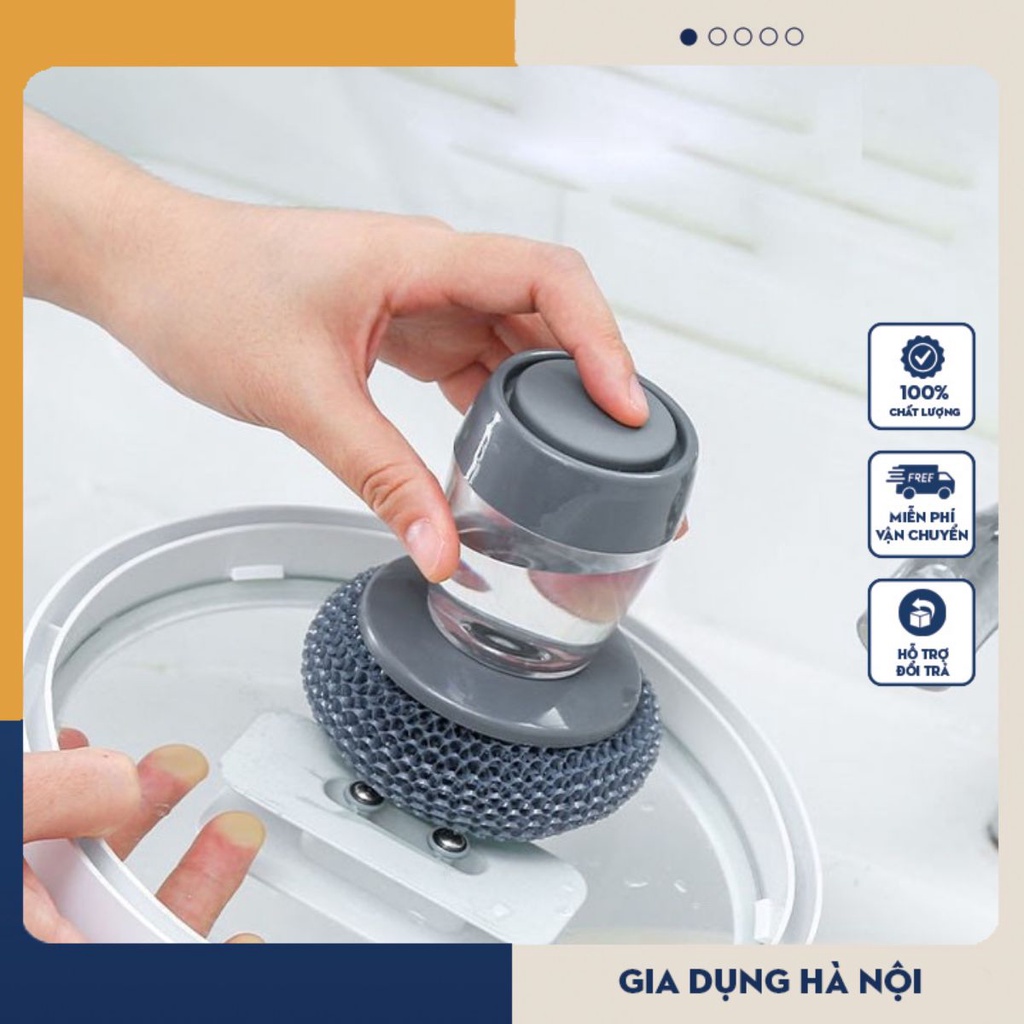 Bàn chải cọ xoong nồi, cọ bếp, cọ rửa bát đĩa có bình đựng xà phòng