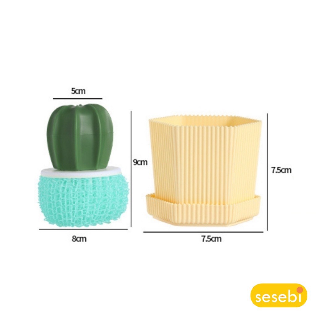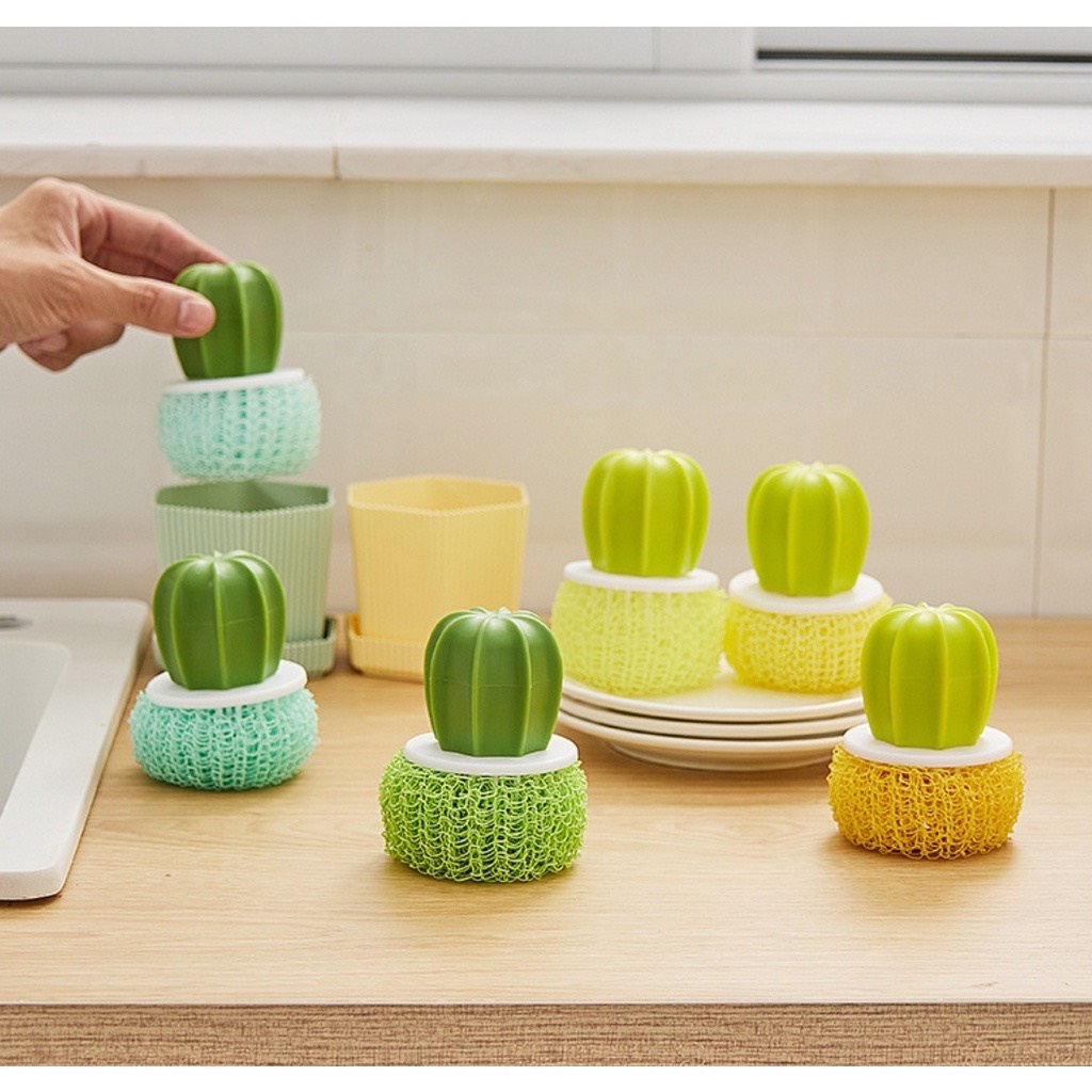 Bàn chải cọ xoong nồi, cọ bếp, cọ rửa bát đĩa Hình Xương Rồng - dụng cụ chà xoong nồi siêu dễ thương