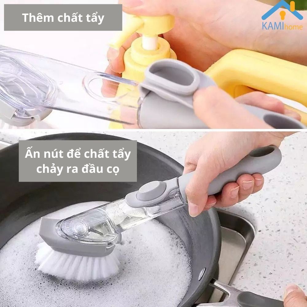 Nhà cửa & Đời sống > Dụng cụ chăm sóc nhà cửa > Bàn chải vệ sinh || Bàn chải đa năng có Bơm chất tẩy rửa nhiều đầu cọ chống xước mã 70018 KamiCòn hàng