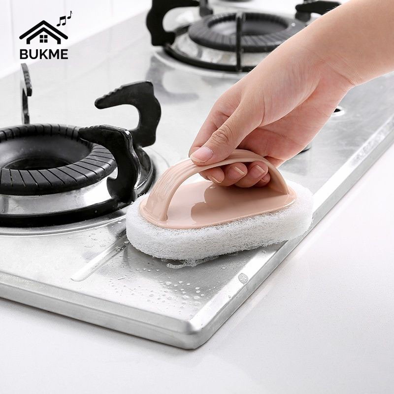 - Miếng bọt biển chà vệ sinh có tay cầm là dụng cụ nhỏ gọn, tiện ích nhất trong việc lau chùi các vết bẩn trong nhà. Sản phẩm tạo thành từ các sợi tổng hợp để có thể lau chùi bất kỳ vết bẩn nào.