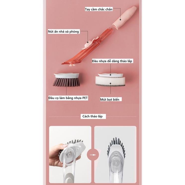 - Sản phẩm có thể tháo lắp dễ dàng để thay đổi giữa đầu cọ và mút bọt biển tùy nhu cầu sử dụng.