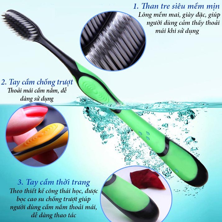 - Chất liệu : Thân nhựa PP, lông bàn chải chất liệu than hoạt tính