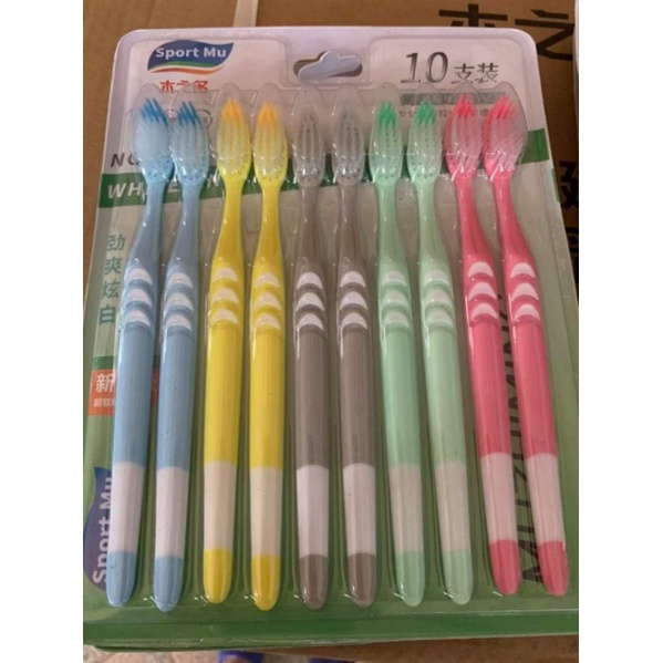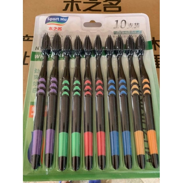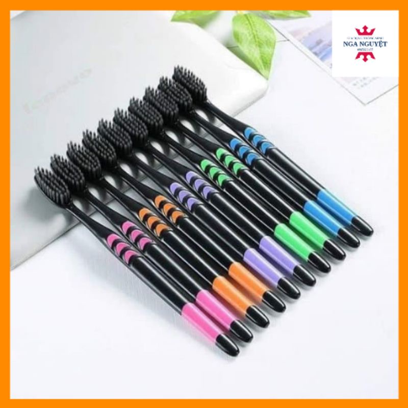 Bộ 10 bàn chải đánh an toàn - Bàn Chải Đánh Răng than tre hoạt tínhTHÔNG TIN SẢN PHẨM Kích thước chiều dài: 19cm Kích thước lông bàn chải dài: 1,2cm Nhiệt độ chịu tới: 80 độ C Cấu trúc lông bàn trải hai tầng, sợi tròn và sợi chỉ tơ len lỏi vào từng kẽ răng giúp chải răng sạch hơn, Massage nướu lợi và lợi giúp loại bỏ những mảng bám cứng đầu nhất. Bộ bàn chải đánh răng sợi nhỏ sử dụng công nghệ từ Hàn Quốc, với thành phần từ hạt carbon an toàn cho sức khỏe người sử dụng, lông mềm mịn an toàn, ko gây đau chảy máu chân răng. Dùng nguyên liệu thực vật để chế tạo lông bàn chải, nguyên liệu thực vật phân hủy trong vòng một năm rất thân thiện với môi trường. Dùng cho cả gia đình, tiện lợi sạch sẽ