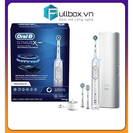 - Oral-B Genius X với công nghệ trí tuệ nhân tạo, bàn chải sẽ theo dõi việc chải răng hằng ngày của bạn và hướng dẫn cách chải răng để đem lại hiệu quả tốt thông qua ứng dụng Bluetooth kết nối bàn chải với điện thoại thông minh của bạn.