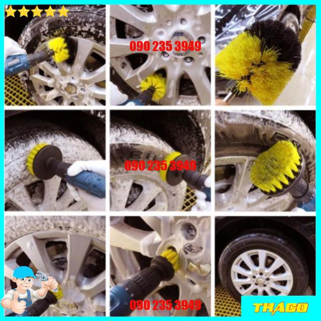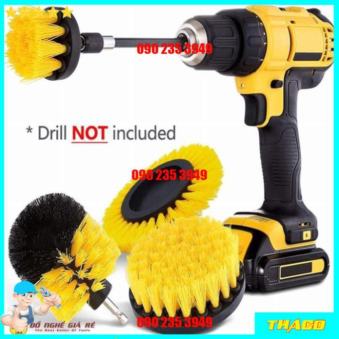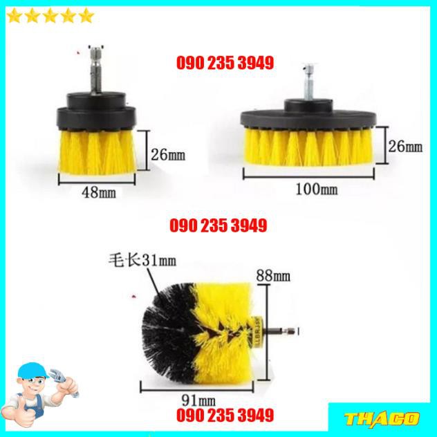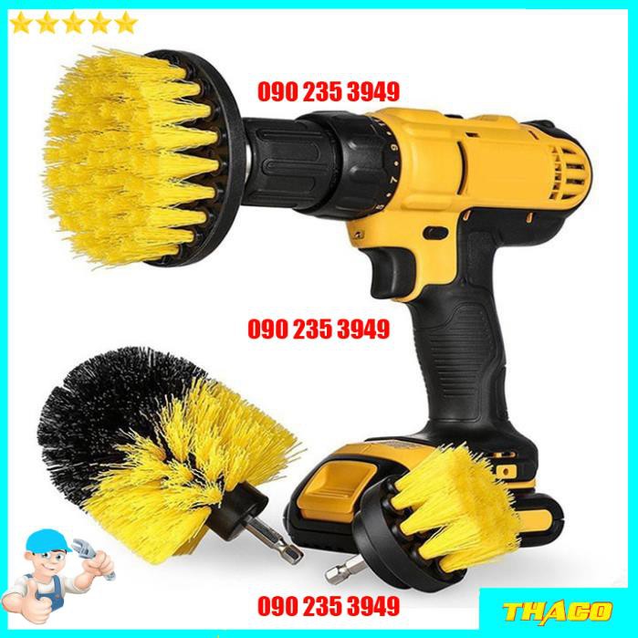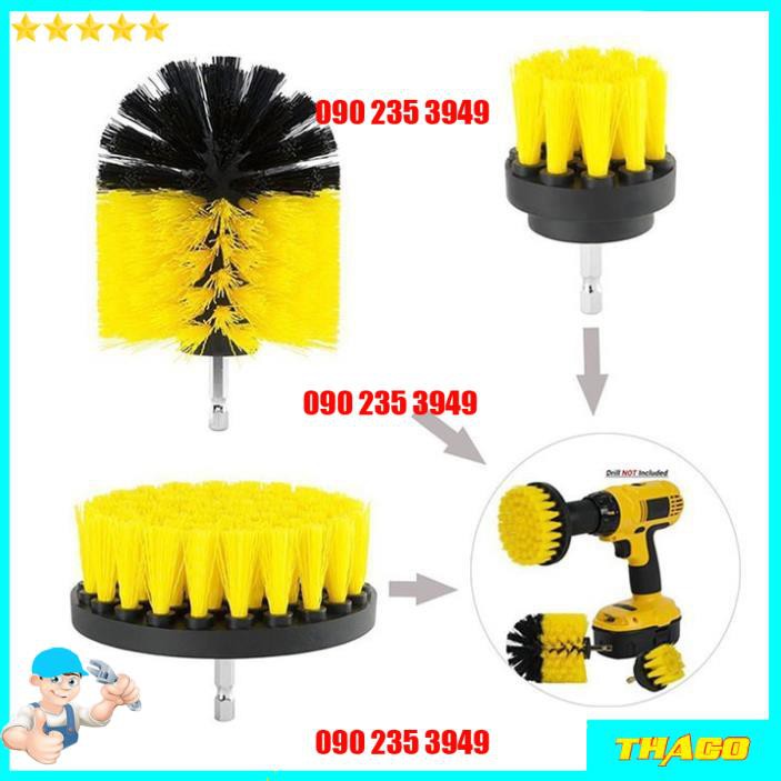 Bộ 3 đầu bàn chải gắn máy khoan vệ sinh nhà cửa rửa xe đa năng- Chất liệu : Nilon siêu bền