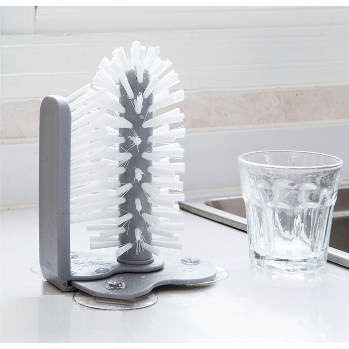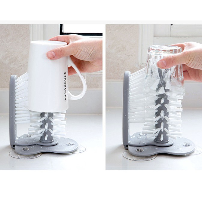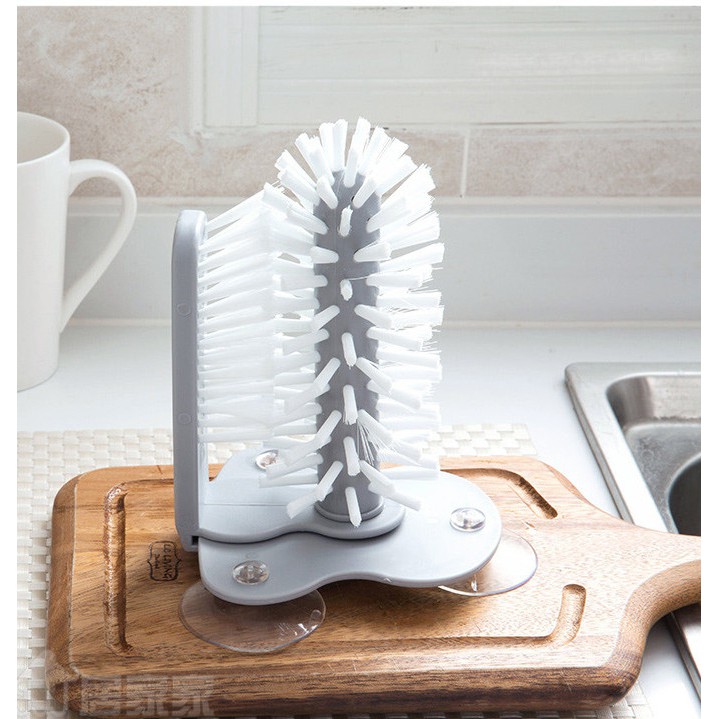 Bàn chải hai đầu chà đánh rửa chén bán ly chén trong ngoài (kèm hít chân không cố định)