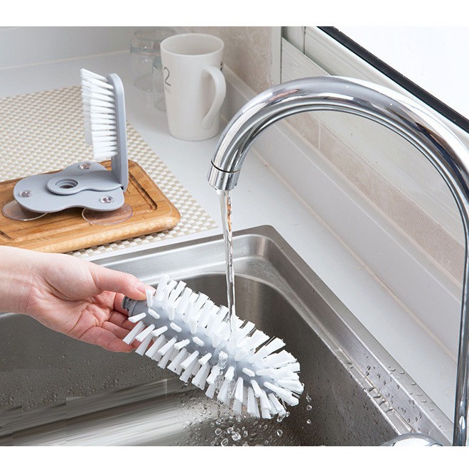 Nhà cửa & Đời sống > Dụng cụ chăm sóc nhà cửa > Bàn chải vệ sinh || Bàn chải hai đầu chà đánh rửa chén bán ly chén trong ngoài (kèm hít chân không cố định)Còn hàng
