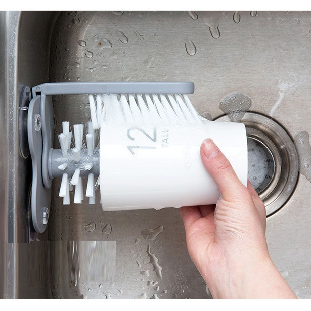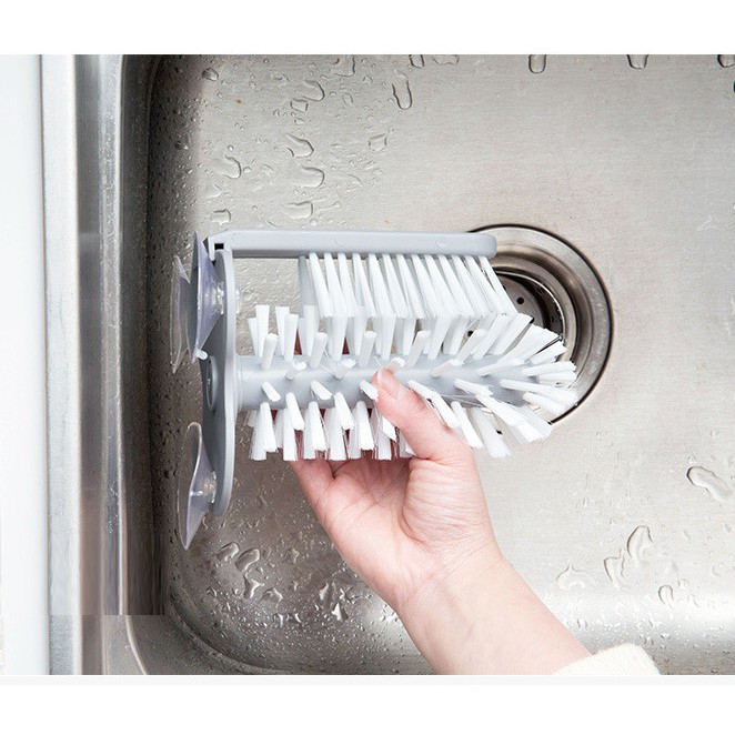 ** Bàn chải chà rửa với thiết kế thông mình hai đầu chà, 1 chà lớn và 1 chà nhỏ, giúp bạn 1 lúc cọ rửa cả mặt trong và mặt ngoài sản phẩm, như ly, chén, vật dụng có độ sâu mà tay khó chà rửa vào trong.** Thiết kế chân hít chân không giúp cố định bàn chải đứng yên, dễ dàng chùi rửa