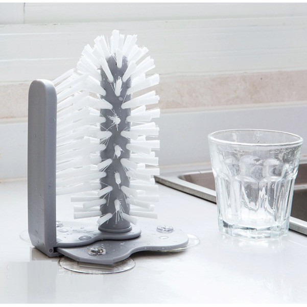 Bàn chải hai đầu chà đánh rửa chén bán ly chén trong ngoài (kèm hít chân không cố định)