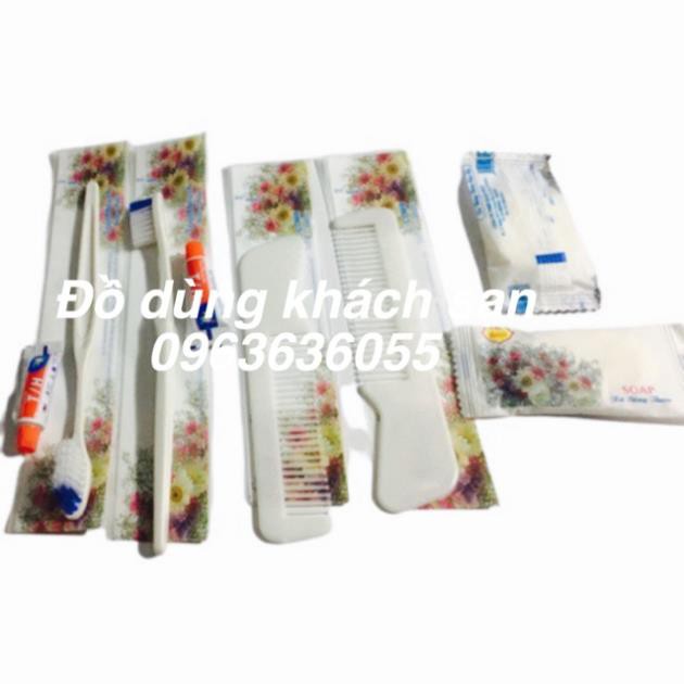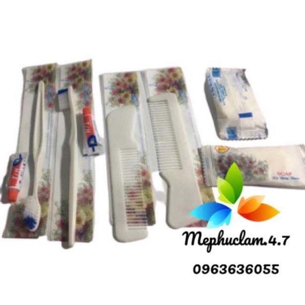 Combo 100 bộ bàn chải 31 chân cước, kem tuýp T/H túi hoa cúcBộ vỏ túi gồm 3 loại vỏ bao bì: bàn chải, lược, xà bông