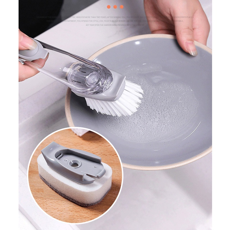 Bàn chải rửa chén bát 3 trong 1 - Cây bàn chải cọ rửa bếp có cán đựng nước rửa siêu tiện lợi