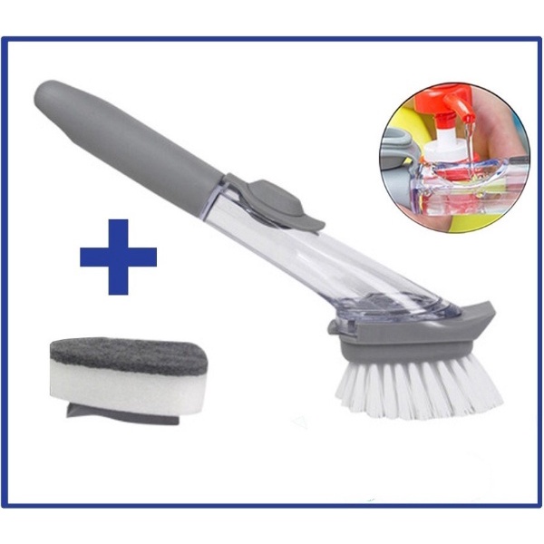 Bàn chải cọ rửa chén bát, xoong chảo đa năng có cán đựng nước rửa và cán dài sạch sẽ, cọ rửa sạch từng chi tiết góc nghách trong nhà bếp, có nút bơm nước rửa rất tiện lợi và tiết kiệm.- Bộ sản phẩm bao gồm: