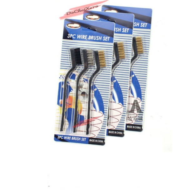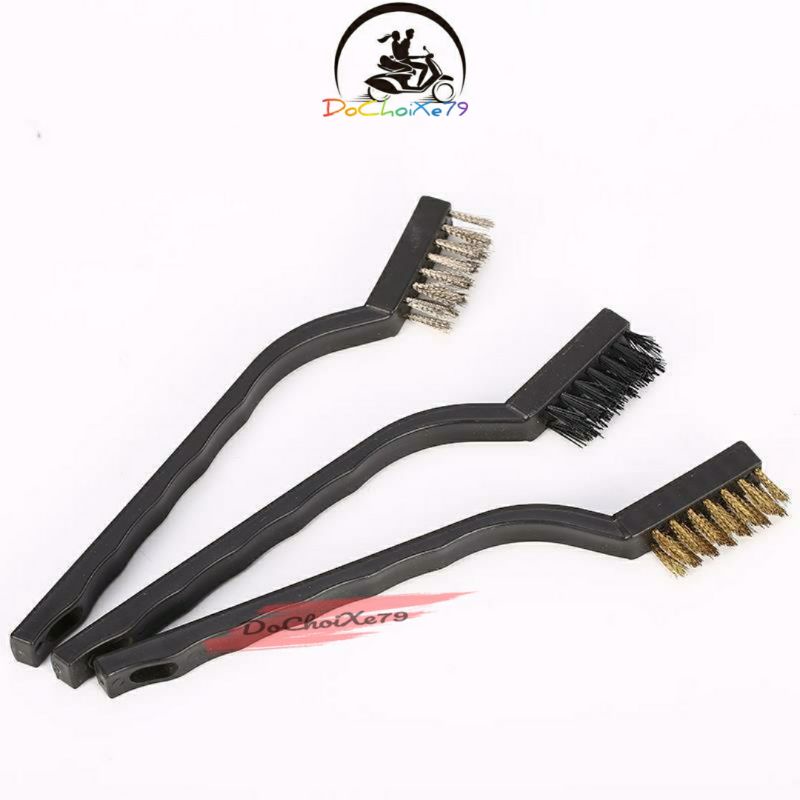 Bộ 3 cây bàn chải sắt,đồng và nhựa. Chuyên dùng để vệ sinh xe. Vệ sinh bếp ga nhà tắm,các khe cửa sổ...Bàn chải bằng sắt dùng vệ sinh đất cát khô cứng lâu ngày.