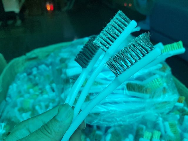 Bộ 3 cây bàn chải sắt.Bàn chải cán bằng nhựa dài 17,5Cm rộng 1,2cm chiều dài của lông là 1Cm. Chuyên dùng để vệ sinh phần thô